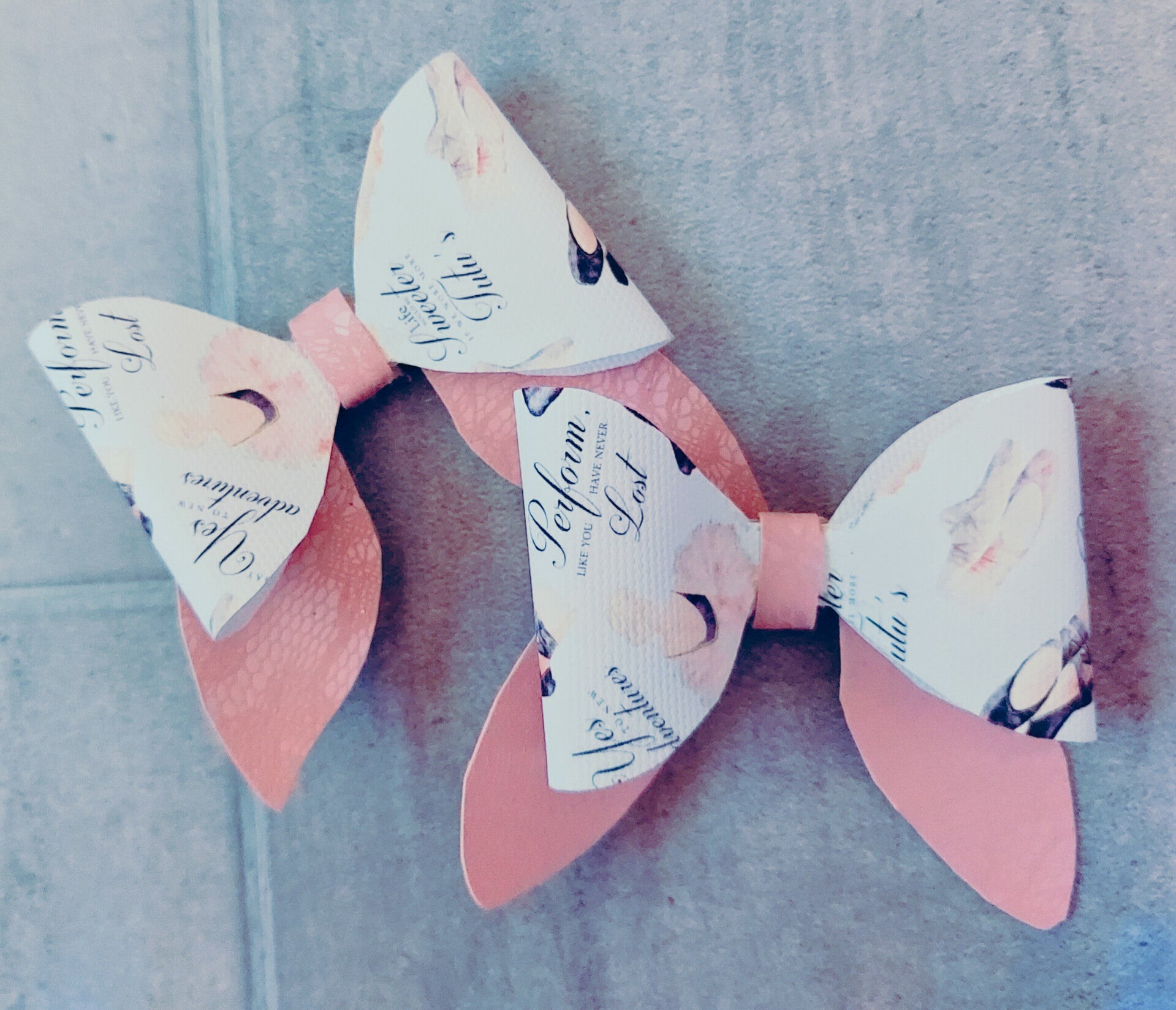 Featured throughout the bows are cute little ballet quotes with silky lace pink tails.